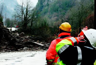 Le tunnel a joué le rôle de paravalanche, certes, mais ne faisons pas les malins, il suffit de voir une traverse éclatée et un rail tordu à 45° pour se rendre compte de la violence des chocs des rochers déjà tombés auparavant sur la voie. D’ailleurs, sur ce tronçon, on peut voir encore les poteaux en béton et leur nappe d’isolateurs qui supportaient des détecteurs d’avalanches, installés jadis dans le secteur. Nous sommes donc dans un secteur particulièrement dangereux où la montagne « travaille ». Ni le rail ni la route n’auront un sort meilleur si les falaises surplombant la zone lâchent leurs masses de rochers.