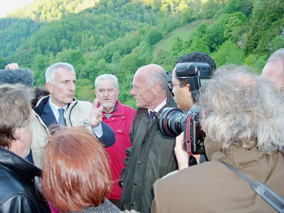 Puis il y a eu conférence de presse à Bedous. À cette occasion, j’ai, devant la presse, dit qu’il y avait assez d’études, qu’elles concluaient toutes à la faisabilité technique et à la rentabilité commerciale de la ligne. Et devant la presse, j’ai remis l’étude de Jürg Suter directement à Guillaume Pepy en expliquant rapidement les compétences de l’auteur et l’intérêt en lui montrant la pages avec les graphiques de circulations appelés « sillons ». J’ai dit comment la ligne pouvait s’autofinancer en montant en charge. J’ai remis aussi à Guillaume Pepy la brochure des CFF consacrée à l’inauguration du Lötschberg dans laquelle Jürg Suter fait une comparaison entre le Canfranc et le Lötschberg, la vieille ligne ayant amorcé le trafic et restant toujours très utile pour le fret alors que le tunnel de base du Lötschberg est surtout utile pour les voyageurs à grande vitesse.