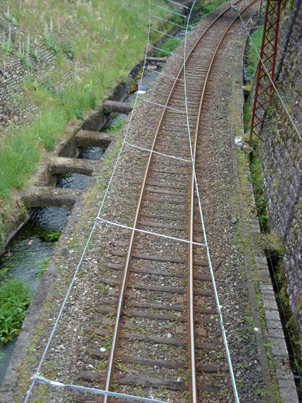 Annoncé depuis longtemps, attendu avec impatience, le RVB POL* va se dérouler dès ce 1er juillet jusqu’au 31 décembre. L’état de la voie ferrée a atteint un niveau de vétusté qui ne permet plus de faire circuler les autorails du TER Béarn dans des conditions satisfaisantes de confort et de durée de trajet (40 minutes pour 36 km). Grâce à un contrat de programme État Région, 35 M€ sont affectés au renouvellement total des 3 composantes essentielles d’une voie ferrée : le ballast, les traverses, et les rails. Des travaux complémentaires auront également lieu, destinés à améliorer la stabilité de certains talus de la ligne ou à changer les ponts les plus endommagés par leur âge. Durant les 6 mois de chantier, les autorails du TER Béarn ne circuleront pas : ils seront tous remplacés par des cars. L’entreprise adjudicataire est COLAS RAIL. Sans attendre la date du 1er juillet, cette entreprise a déjà mis en œuvre depuis avril dernier des travaux préparatoires ; ils consistent à : — déposer la caténaire Midi [photo] à l’aide de lorries [photo] ; cette intervention se déroule de nuit. Rappelons que la caténaire n’est plus utilisée par les trains depuis octobre 2008. Les travaux de modernisation de la ligne ne prévoient pas de poser une nouvelle caténaire, faute de financement. — acheminer du ballast par camions en divers points de la ligne [photo] pour sa répartition ultérieure. — acheminer aussi des rails par trains de travaux [photo] tirés par des locotracteurs diesel Vossloch de COLAS RAIL [photo] ; ces rails sont visibles tout au long de la ligne [photo]. — acheminer également des traverses en béton en divers points de la ligne, avec le matériel nécessaire (tire-fonds et attaches). — installer des bungalows de chantier pour les besoins du personnel, comme ici en gare d’Oloron-Sainte-Marie [photo ]. Le CRÉLOC reviendra vers vous, chers amis internautes, dans le courant de l’été pour vous donner plus de précisions sur le déroulement de ce chantier d’exception.