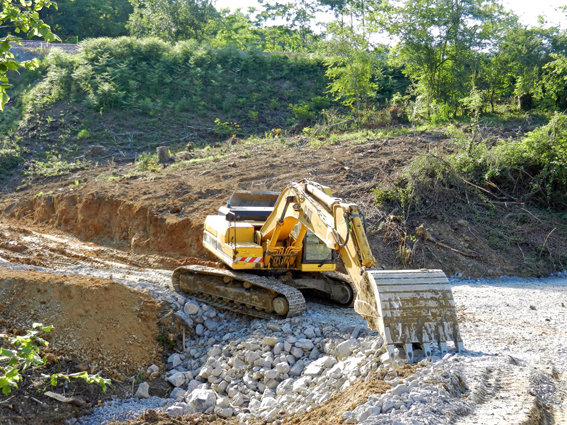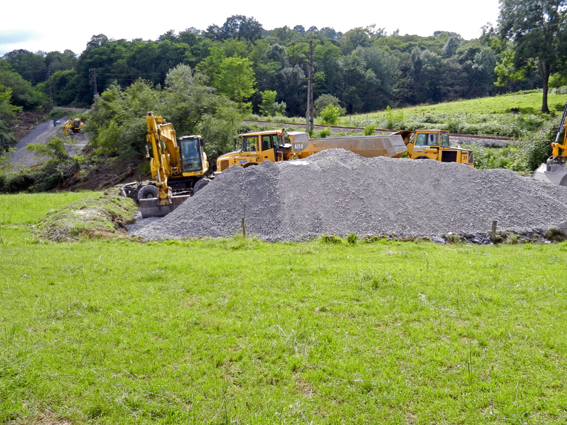 Les engins de chantier sont (enfin !) à l'œuvre sur le chantier de l'affaissement de Haut-de-Gan.