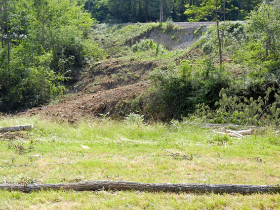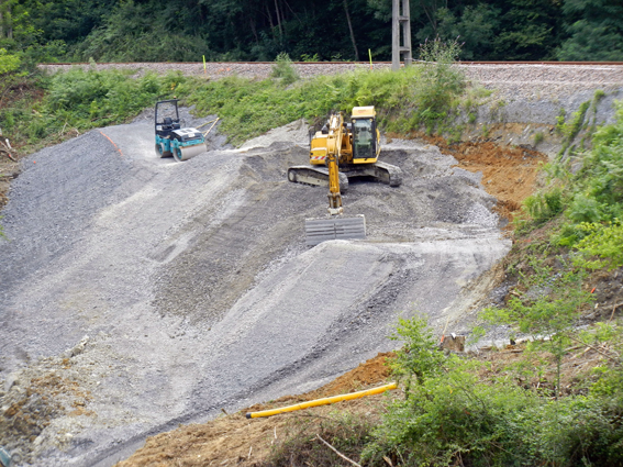 La talus affaissé à Haut-de-Gan. La photo a été prise le 17 juin 2014 ; seuls quelques travaux