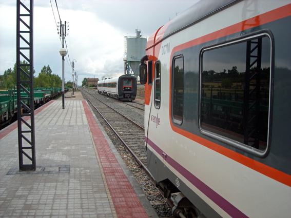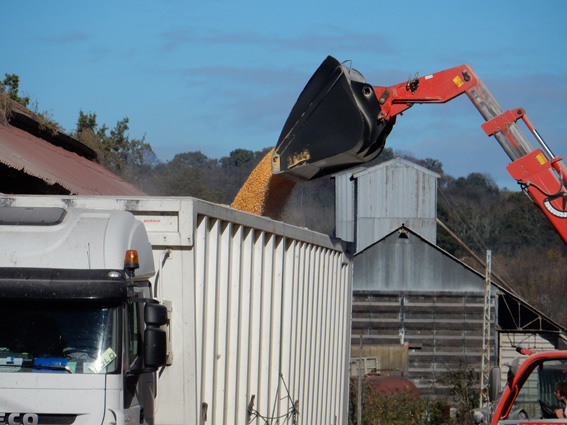 Un convoi de maïs prêt à partir... en train vers l'Espagne, alors que les silos de Canfranc sont alimentés