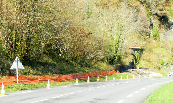 • au Sud d'Urdos, un glissement de terrain sur la RN 134 nécessite la mise en place d'une restriction de circulation aux poids-lourds. Le bus TER s'arrête donc à Urdos.