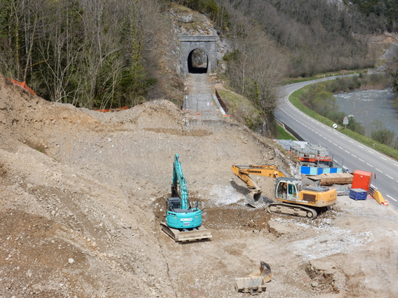 Les premiers engins sont arrivés hier, 30 juin 2014, sur le chantier de l'affaissement de Haut-de-Gan. Nous mettrons en ligne quelques photos rapidement.