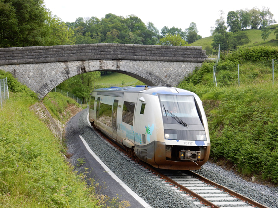 Un premier autorail a procédé à des essais entre Oloron et Bedous, ce mercredi 25 mai au matin. L'évènement a déjà été relaté par le quotidien Sud-Ouest. Et l'ami François avait choisi avec soin son emplacement...