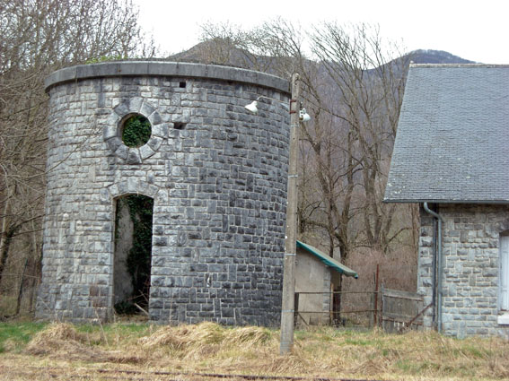 château d’eau m. — réserve d’eau pour alimenter les chaudières, désormais en voie de désuétude. La station de Bedous conserve la maçonnerie d’un château d’eau dont le réservoir a disparu. La ligne Pau--Bedous était ouverte bien avant le Canfranc.<<