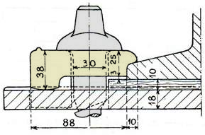 coussinet m. — pièce de fonte ou d’acier fixée sur la traverse par des tire-fonds et destinée à recevoir le rail à double champignon.<<