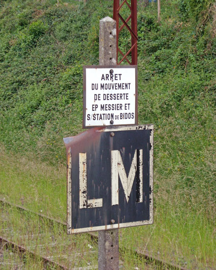 LM signal — correspond à la limite à ne pas dépasser pour les mouvements de manœuvre ; celui-ci annonçait la desserte de Bidos (Messier et la sous-station).<<