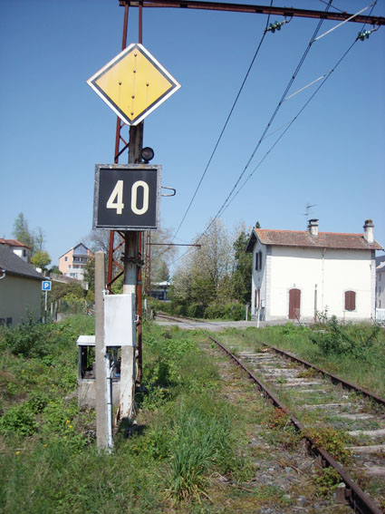 arrêt m. — ce terme désigne un bâtiment construit comme une maison de garde-barrière. L’arrêt est ouvert au services des voyageurs et des colis de petite vitesse. Il n’y a pas de voie d’évitement.<<