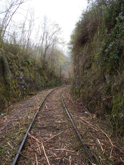 voie en corniche f. — voie en déblai d’un côté et parfois en remblai de l’autre (cf. Lurbe).<<