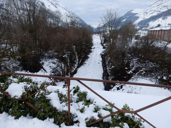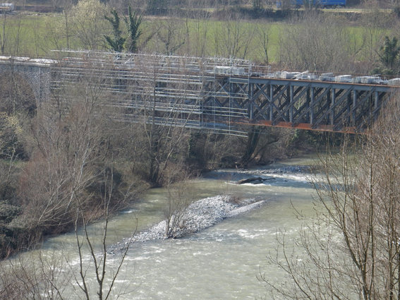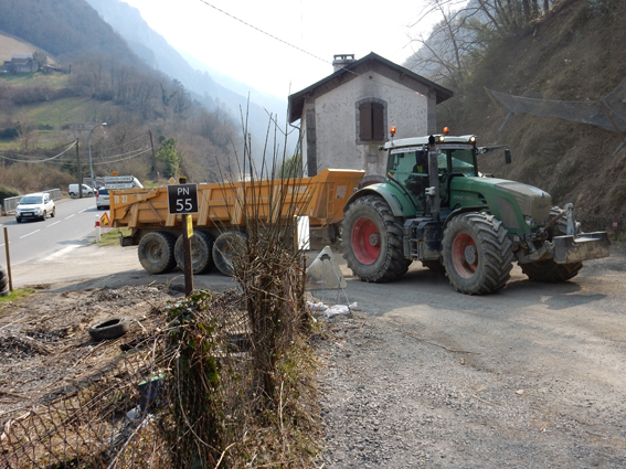 C’est ici que s’achève le débroussaillage du chantier Oloron-Bedous (c.a.d. au 1er pont-route côté Canfranc)