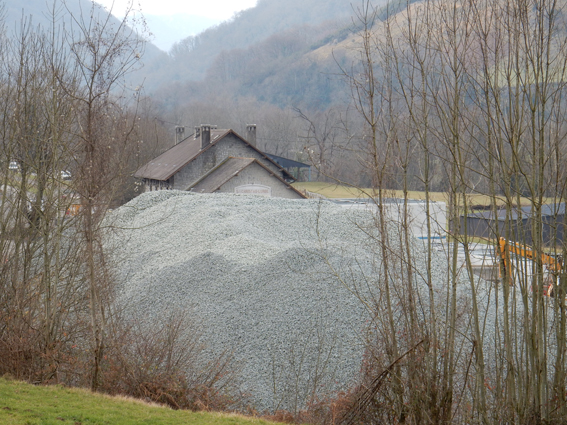 Le ballast neuf atteint déjà une hauteur considérable sur la plateforme de la gare de Lurbe