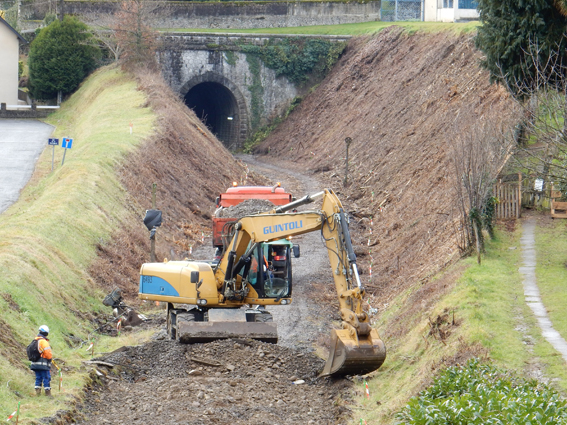La préparation du terrain préalable à la pose de filets entre les tunnels d'Espalungue et du Mail de Couret