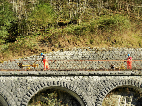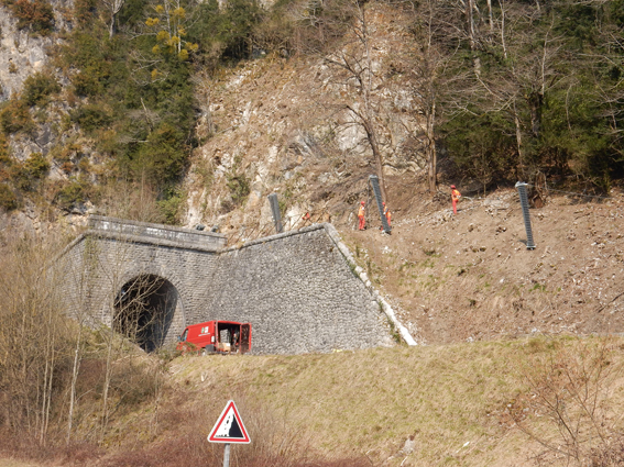 Après la neige, le chantier a repris avec autant de vigueur qu'auparavant. Les principaux travaux portent sur la sécurisation de la voie : reprise de la plateforme, traitement des ouvrages métalliques, protection de la voie contre les chutes de pierre.