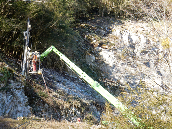 Travaux acrobatiques au viaduc d’Escot pour clouter la paroi rocheuse