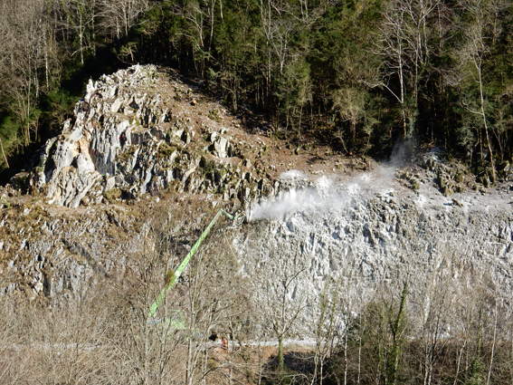 Au nord de Sarrance, la pose du filet de protection est précédé de lapurge de la falaise