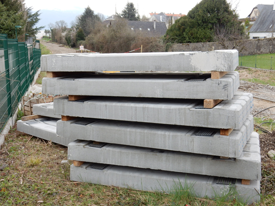 Les premières traverses en béton, au PN 33 à Oloron – Photo François Rebillard – 18 mars 2015