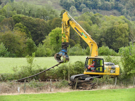 La dépose des voies, tout au long du tracé, et les opérations de débroussaillage se poursuivent. Avec parfois quelques contretemps.
