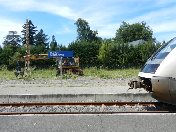 Le Président et le Secrétaire du CRÉLOC étaient impatients de voir les travaux de la section Oloron-Bedous démarrer. Bien leur en a pris, puisqu'ils nous rapportent les premières images des travaux, prises hier, 25 août 2014, en gare d'Oloron.