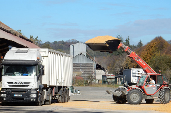 Les camions de maïs, chargés en gare d'Oloron, vont rejoindre la gare de Canfranc et ses silos..