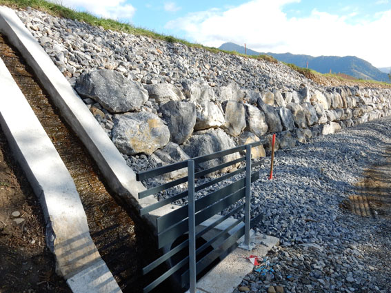 la séparation enrochement-béton projeté. – Photo Gérard Lopez  – CRÉLOC – 16 octobre 2015