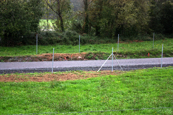 Du PN 51 vers le viaduc d'Escot, les poteaux vont recevoir des filets de protection.